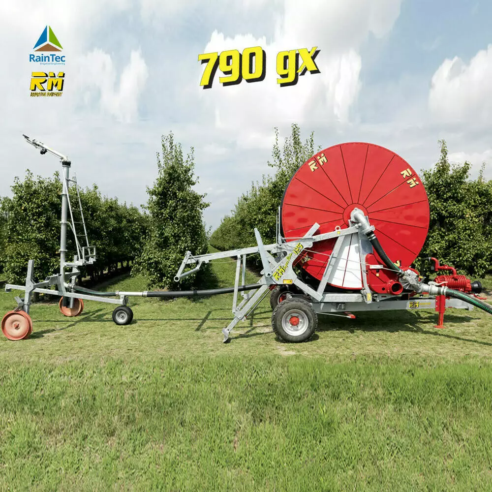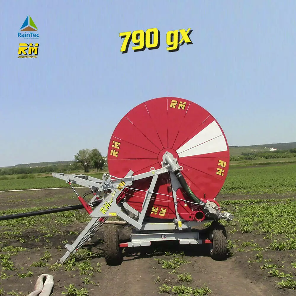 Начиная с модели 790GX машина может быть оснащена (опция) задним рычагом размотки ПЭ шланга, фиксируя тележку- держатель на земле и управляя оросительной машиной; это решение позволяет разматывать шланг устраняя трение о землю используя уже существующие полосы для культивации.